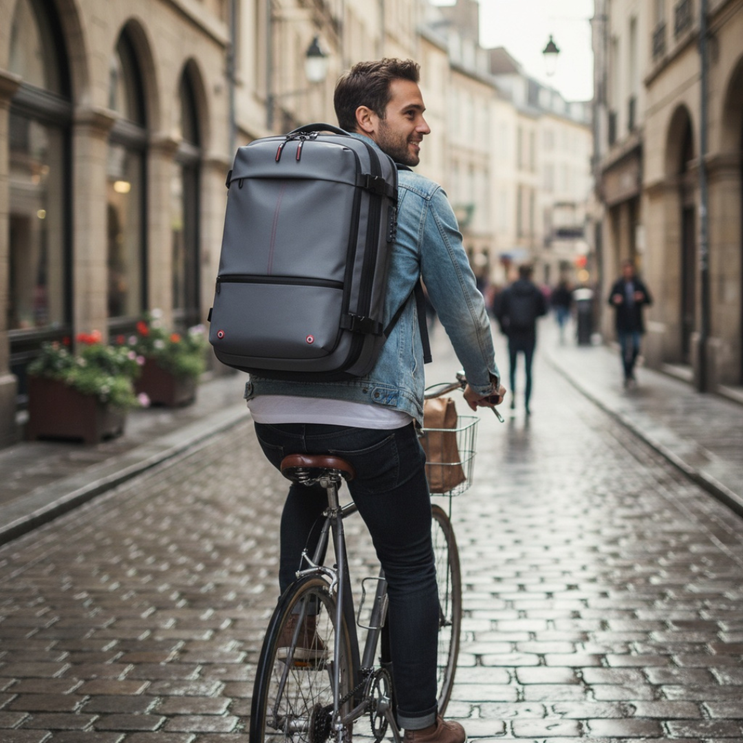 Made from waterproof performance polyester and equipped with anti-theft features plus dry/wet separation, it delivers durability and refined practicality for work, weekends or global adventures.