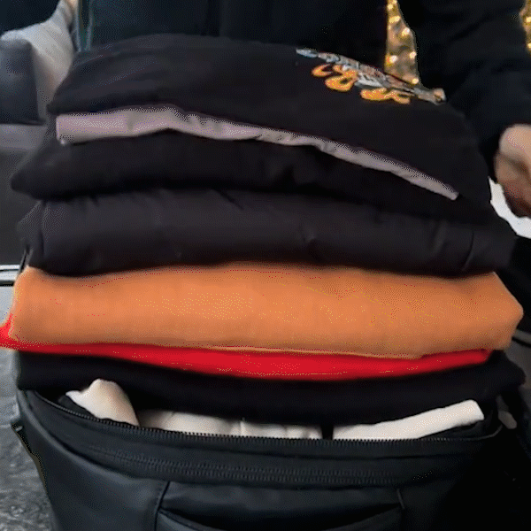 To save maximum space, use the built-in air-tight compartment. Pack your clothing neatly inside, seal it ensuring that the zipper is securely sealed and press out the air through the one-way valve or attach the Air Pump for faster compression. This vacuum system reduces bulk and keeps everything in order. To release, just unzip the air-tight section and your items expand back to size.